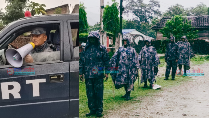 बारा जिल्ला भएर बग्ने औरही, पसाहा र वकैया खोलाहरूमा बढिरहेको पानीको वहाव एवं तटीय क्षेत्रमा हुनसक्ने डुवानको जोखिमवाट सुरक्षित रहन प्रहरीले सचेत गराएको छ। सशस्त्र प्रहरीका जिल्लास्थित सबै यूनिटहरूबाट विपद जोखिम नियन्त्रण र व्यवस्थापन गस्ति परिचालन गरिएको सशस्त्र प्रहरी उपरीक्षक खुम बहादुर के.सी.ले बारा अपडेटलाई जानकारी दिए।