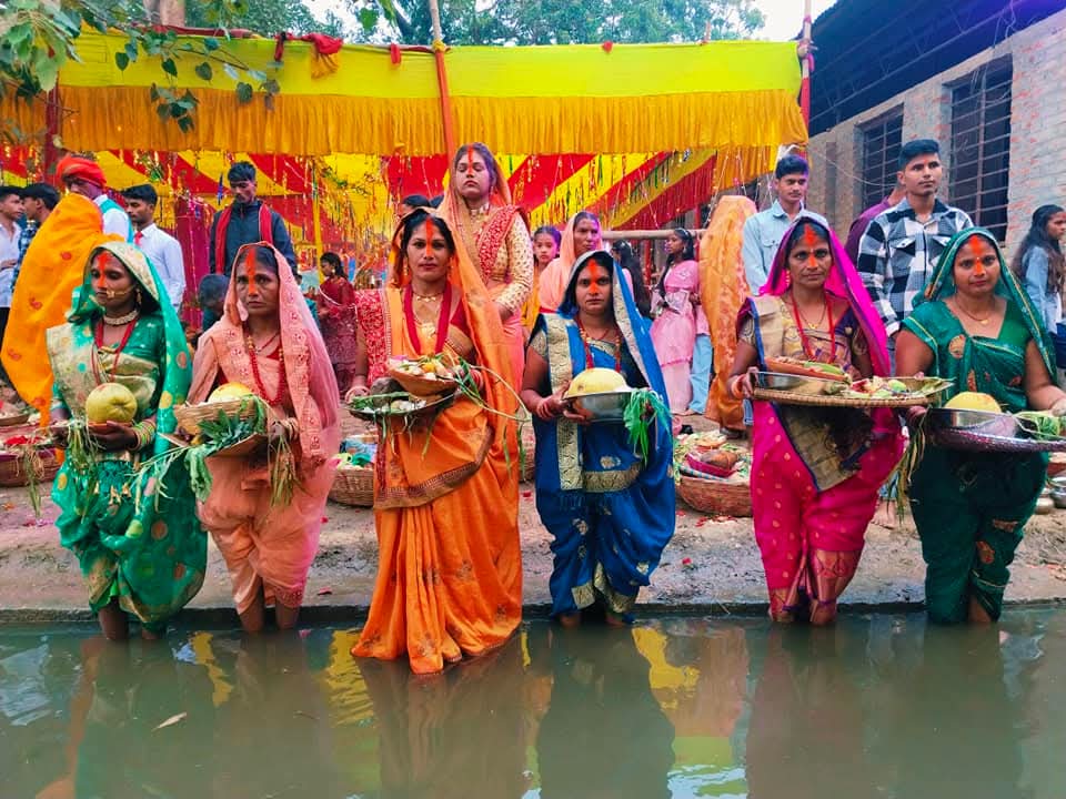 व्रतालुहरू आज छठ पूजाका लागि नदी, पोखरी, तलाउ इत्यादि जलाशयमा तयार पारिएका छठ घाटमा गई श्रद्धापूर्वक पूजा आराधना गरी साँझ अस्ताउँदो सूर्यलाई अर्घ्य दिएका हुन् ।