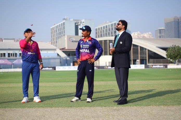 दुबईस्थित आईसीसी एकेडेमीमा जारी खेलमा नेपालका कप्तान रोहित पौडेलले टस जितेर पहिला ब्याटिङ गर्ने निर्णय गरेका हुन् ।