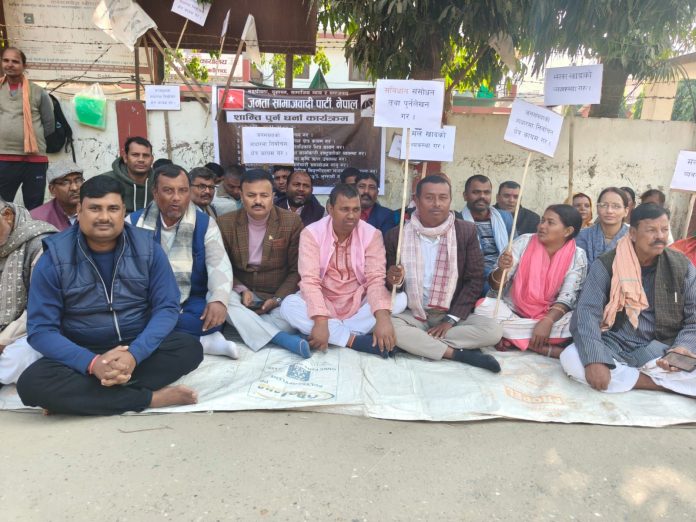कलैया,१९ मंसिर । सबिधान संशोधन तथा पुन लेखन गर्न लगायतको माग गर्दै जनता समाजवादी पार्टी बाराले शुक्रबार जिल्ला प्रशासन कार्यालय बारा अगाडी अढाई घण्टा धर्ना दिएको छ ।